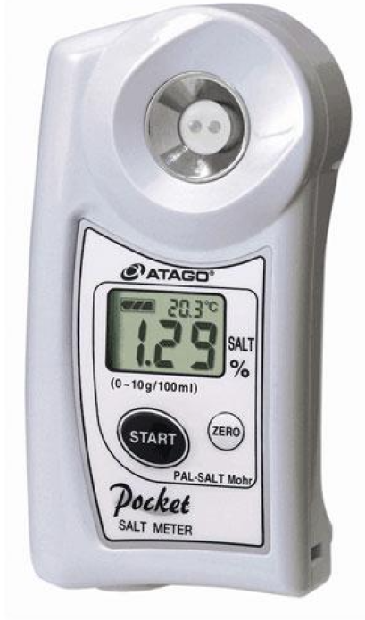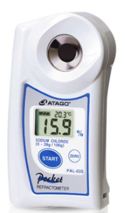 Master-S28M ช่วงการวัด 0 - 28 % (g/100g of Sodium chloride) ละเอียด 0.2 % (0.2g/100g of Sodium chloride) ไม่มีระบบปรับชดเชยอุณหภูมิ
